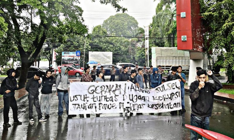 MAKASSAR — Gerakan Aktivis Sulawesi Selatan (Sulsel) menggelar aksi unjuk rasa di Jalan Perintis Kemerdekaan KM 16, Makassar, pada hari ini untuk mendesak Kepolisian Daerah (Polda) Sulawesi Selatan agar serius menangani kasus dugaan korupsi Dana Alokasi Khusus (DAK) Dinas Kesehatan Parepare tahun 2017-2018 sebesar Rp 6,3 Miliar yang ditengarai ikut melibatkan mantan Wali Kota Parepare, Taufan Pawe.