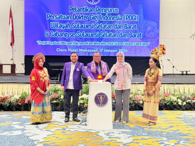 MAKASSAR – Persatuan Dokter Gigi Indonesia (PDGI) Sulawesi Selatan dan Barat menggelar acara pelantikan pengurus baru di Hotel Claro Makassar pada tanggal 17 Januari 2026. Acara ini juga diiringi dengan kegiatan bakti sosial berupa pemeriksaan kesehatan umum, pemeriksaan gigi, serta donor darah yang dilaksanakan pada tanggal 18 Januari 2026.