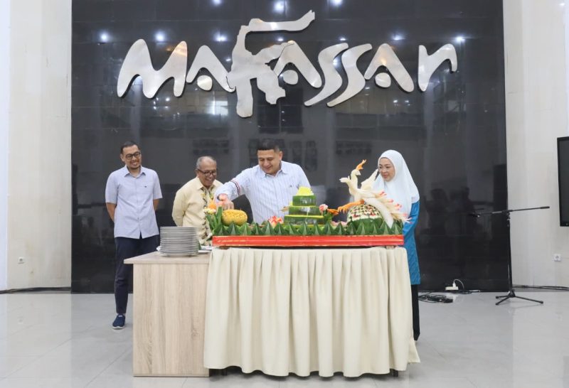 Dalam momen penuh keakraban dan kekeluargaan itu, Munafri memotong tumpeng sebagai ungkapan rasa syukur atas suksesnya seluruh rangkaian perayaan HUT Kota.