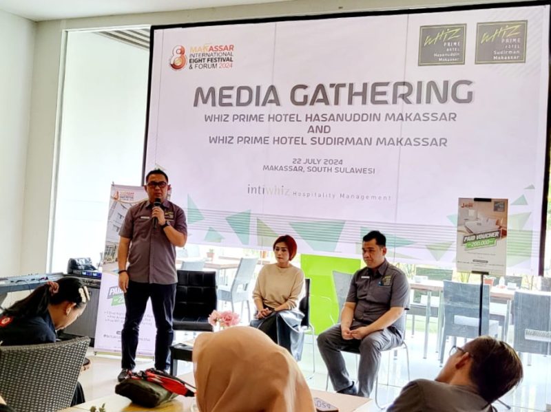 ” Ini yang kedua kali hotel kami ikut Join berpartisipasi di event F8 Makassar, Di mana nantinya kami akan kembali membuka booth promosi di lokasi F8, seperti tahun lalu.kami menawarkan vocher menginap harga super ekonomis serta menjajakan makanan dan minuman UNTUK pengunjung F8 Makassar,” Tutur Ari di phinisi Resto Lantai 1 Whiz Prime Hotel Sudirman Makassar, Jl. Jend. Sudirman No.30, Makassar,Senin (22/7/2024).